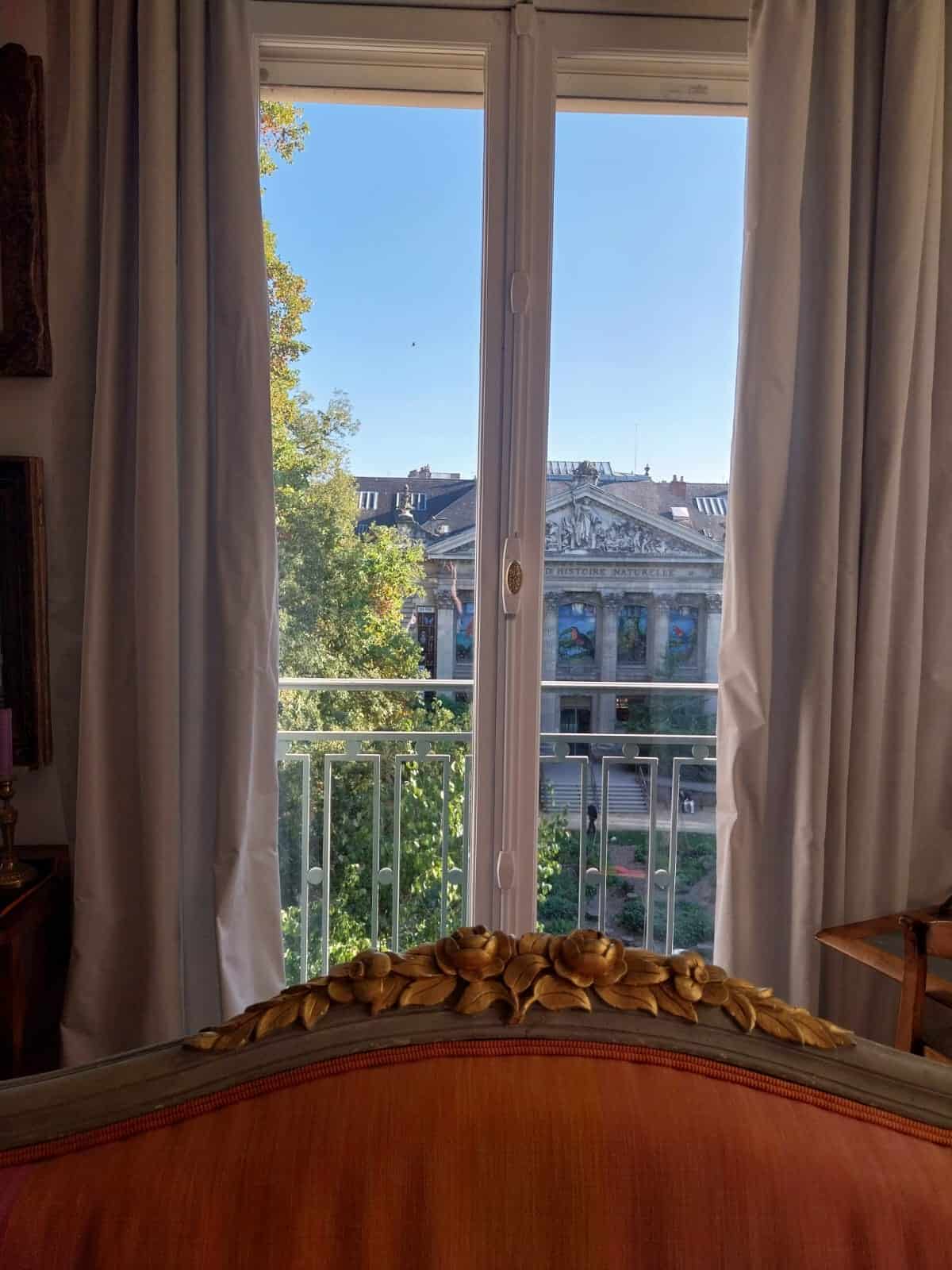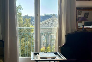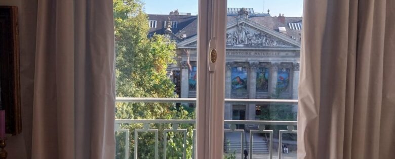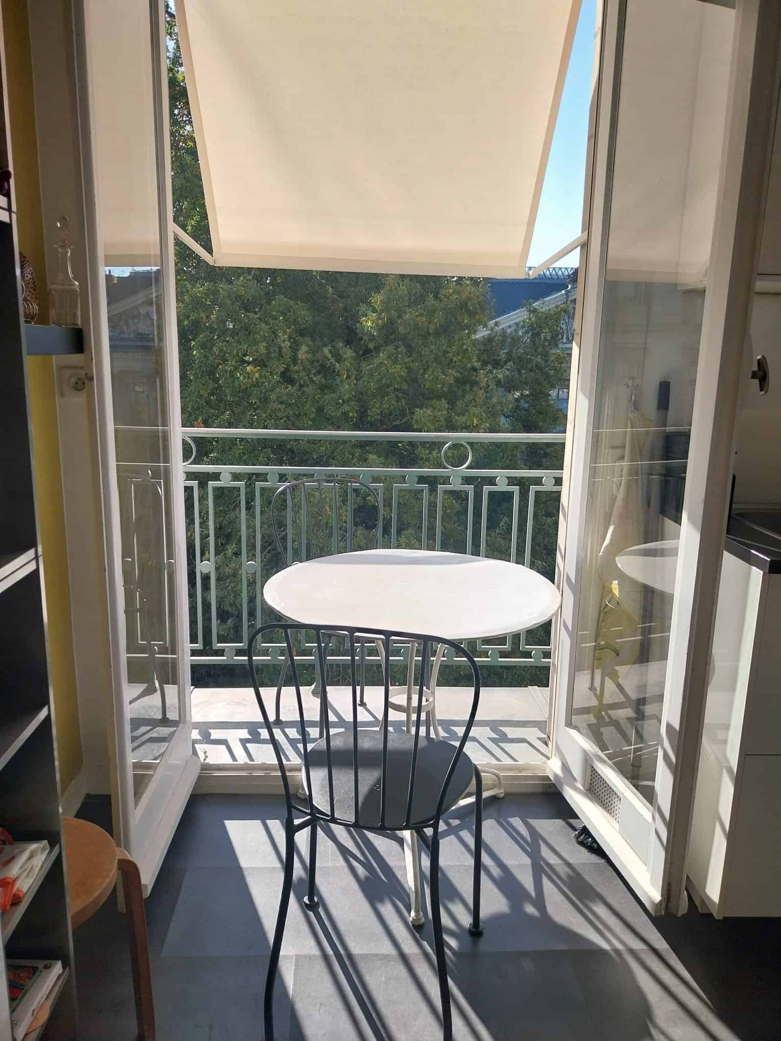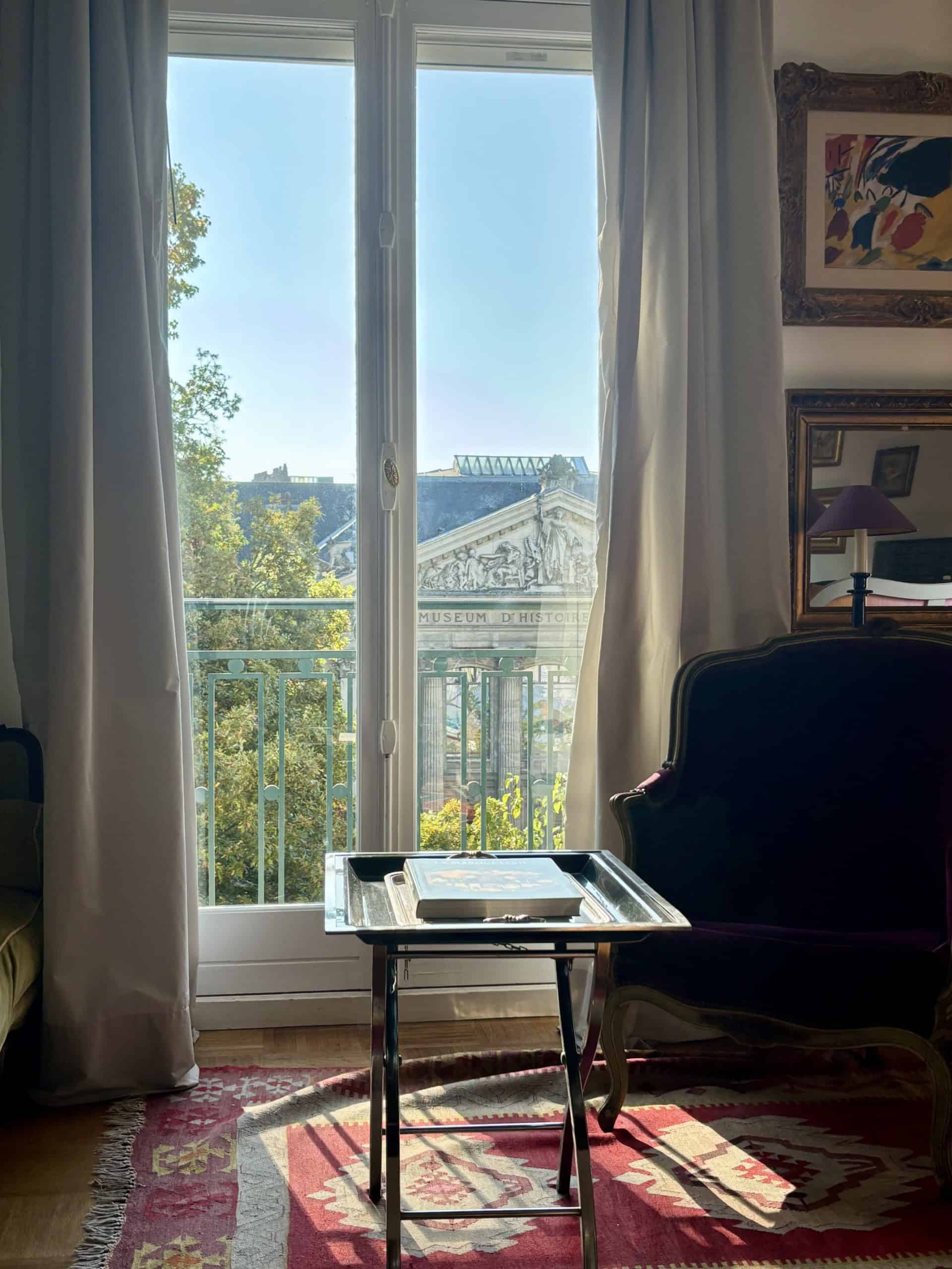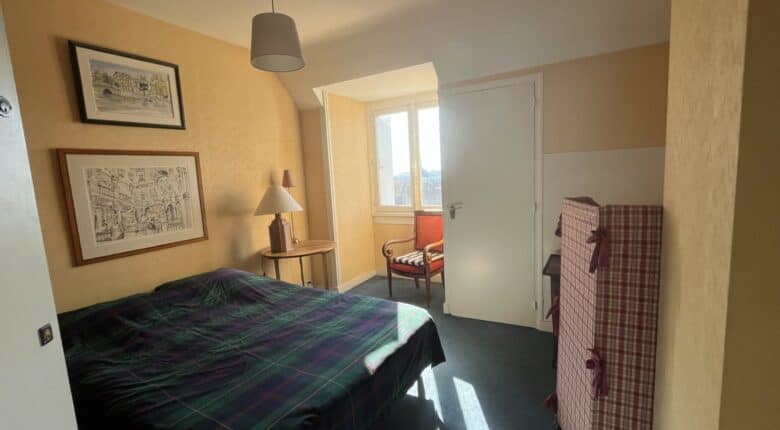 Son plus : une chambre de bonne avec cabinet de toilette au sixième étage avec vue sur les toits.