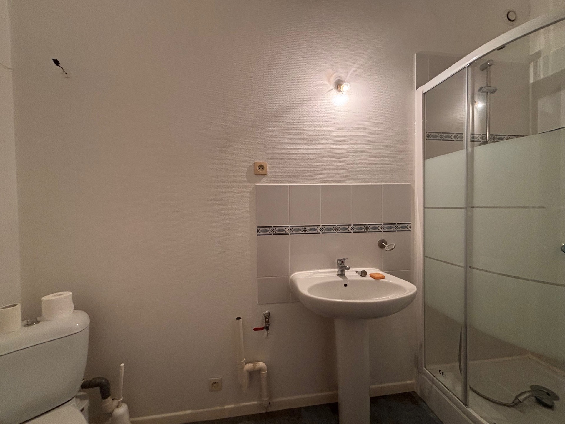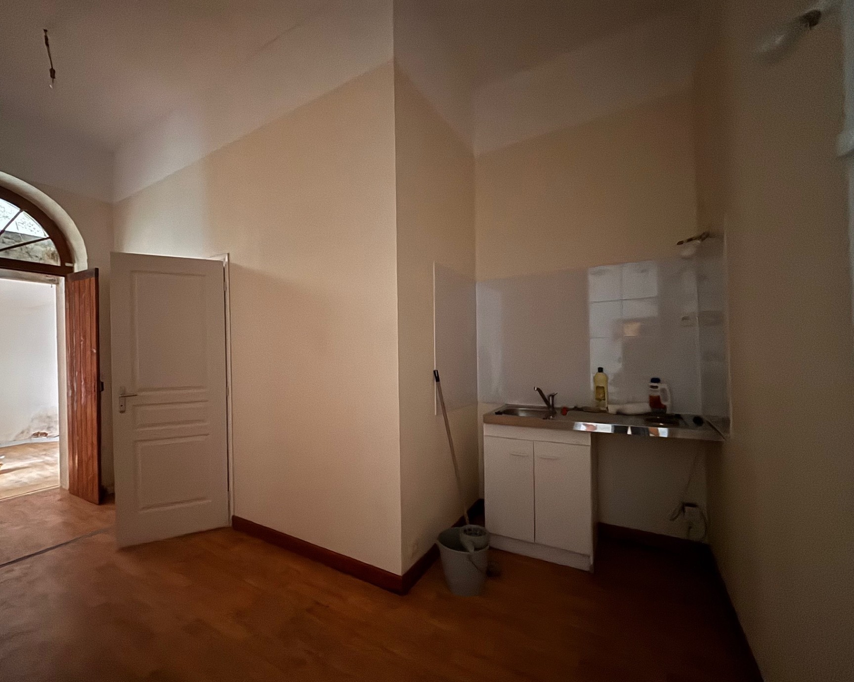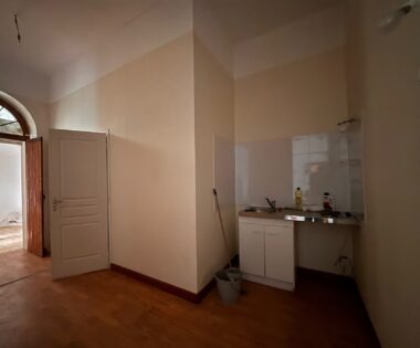 Cet appartement comprend : un salon, une cuisine séparée, une salle d’eau avec sanibroyeur, une chambre.