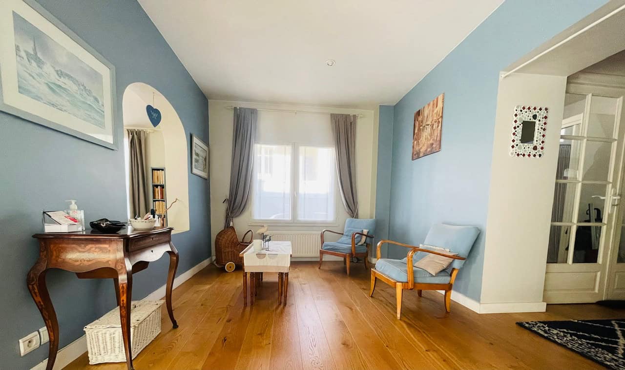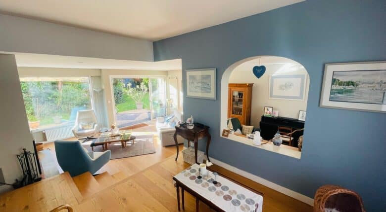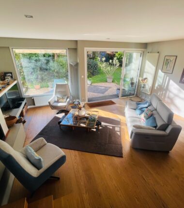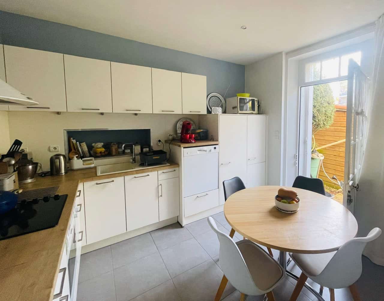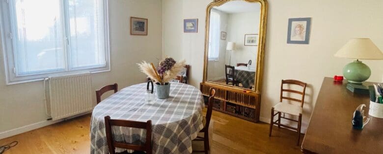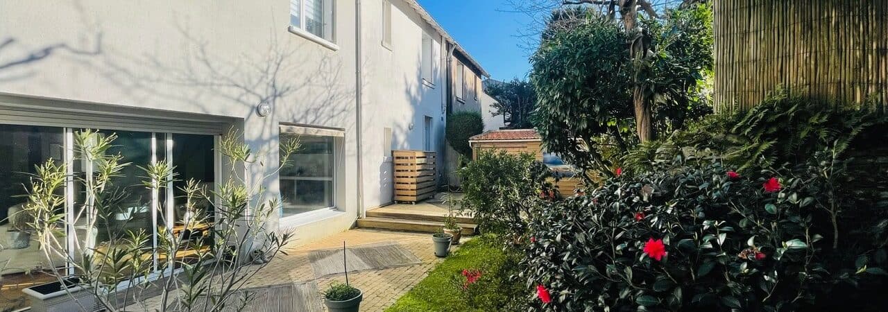 A VENDRE à NANTES (44300), Quartier de la Perverie, à quelques minutes du tram et des commodités, proche des établissements scolaires de la Perverie et du Loquidy, sur une parcelle de 386m2, une maison ancienne rénovée (188m2) mitoyenne d’un côté.