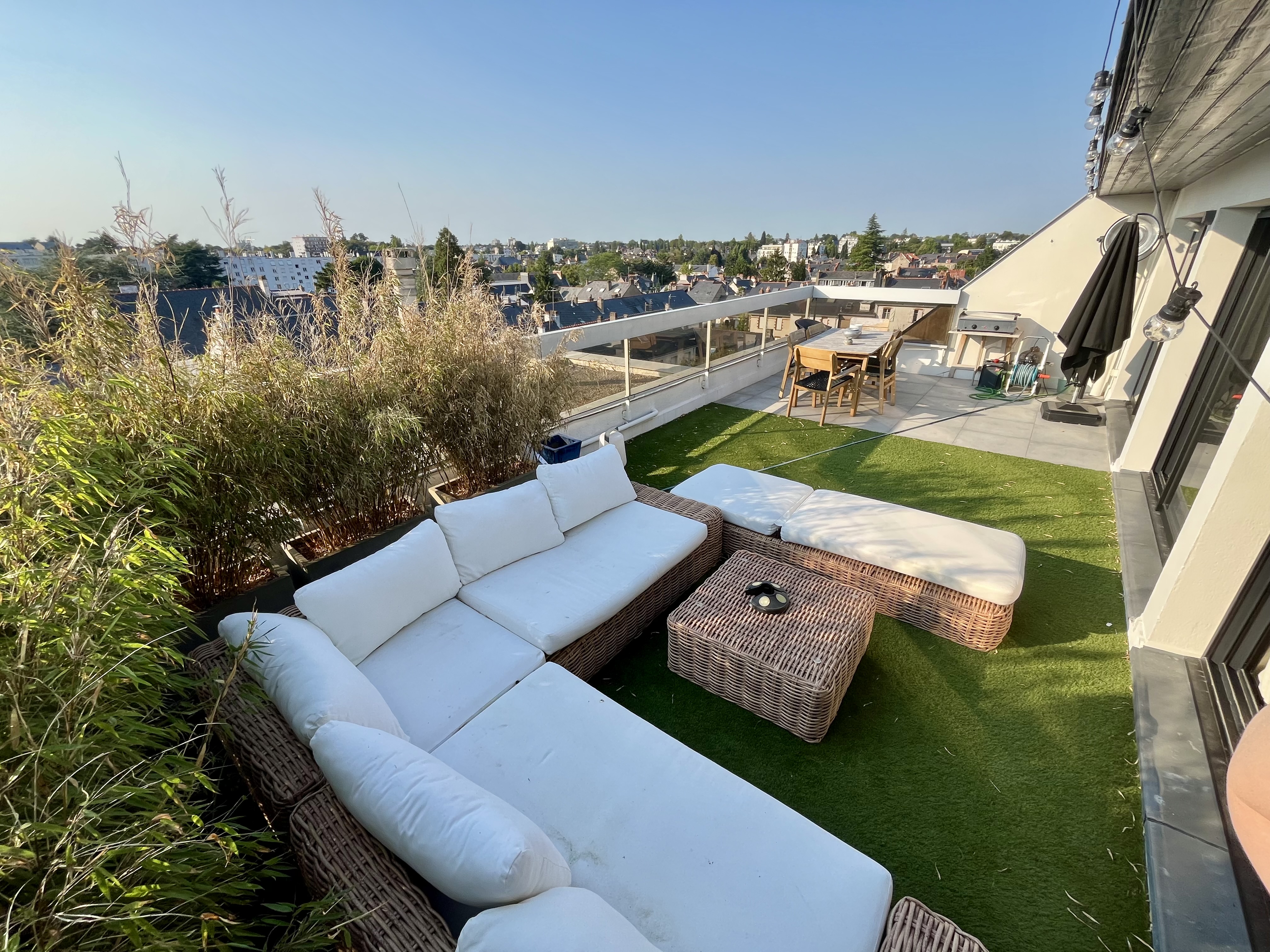 À l’étage, le véritable coup de cœur : un vaste salon baigné de lumière, sublimé par une cheminée fonctionnelle, ouvrant par de larges baies vitrées sur une magnifique terrasse rooftop d’environ 40 m², orientée plein ouest, offrant une vue imprenable sur les toits de Nantes. Un espace rare, idéal pour recevoir ou profiter de fins de journée en toute intimité. Ascenseur, garage, grande cave local à vélos, chauffage au gaz.