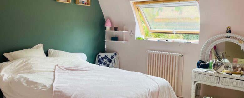A l’étage: un palier desservant quatre chambres, wc et une salle de bains.