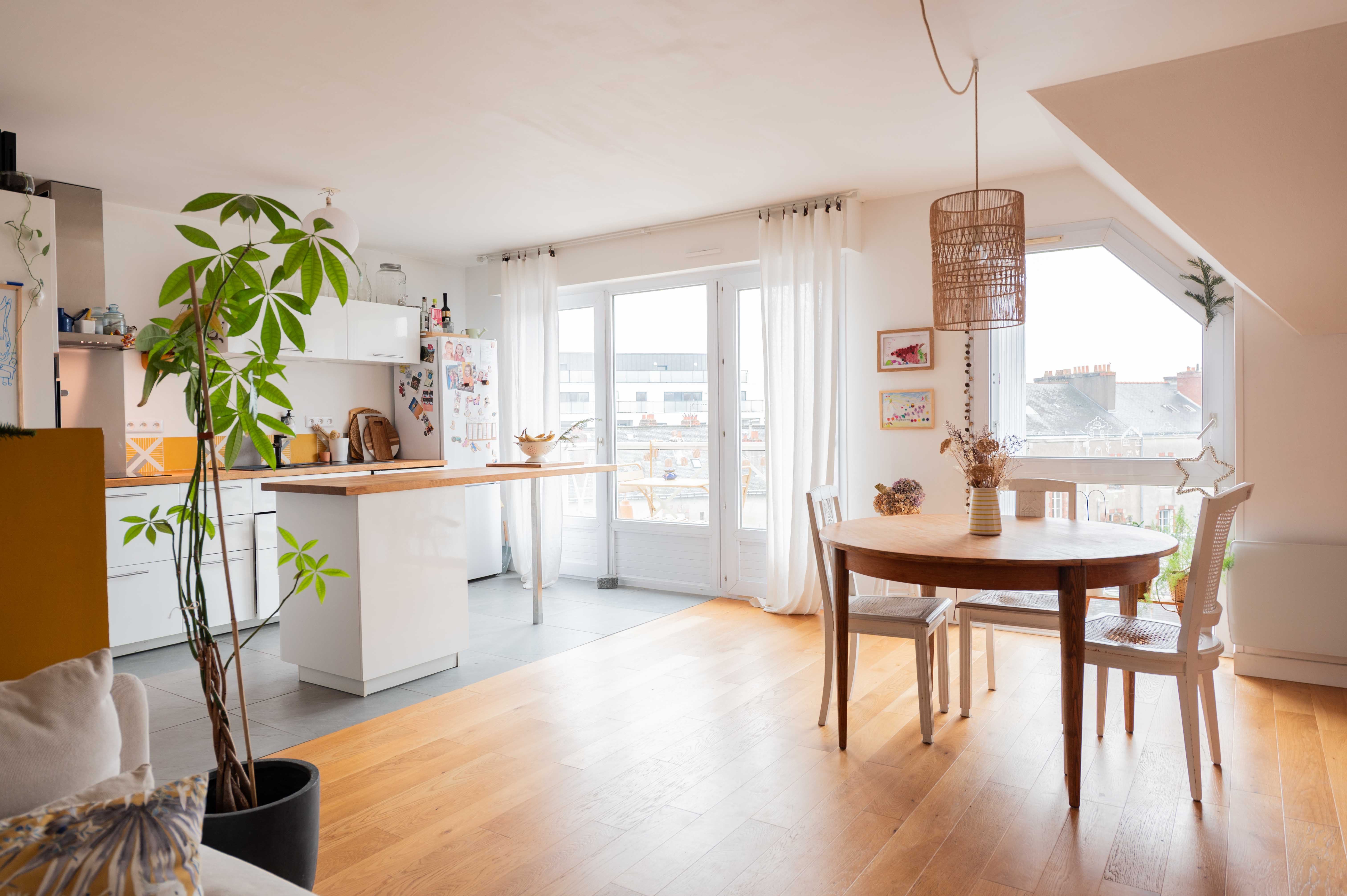 A VENDRE à NANTES (44000), quartier Viarme, au 5ème et dernier étage avec ascenseur d’un immeuble de 1990, duplex de 79 m² avec garage et balcon.