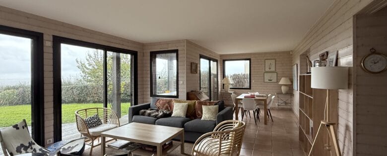 À VENDRE à Guérande (44350), Clis , maison au calme absolu Découvrez cette maison non mitoyenne de 153 m², rare sur le secteur, offrant une vue dégagée à perte de vue sur les marais, jusqu’à Batz-sur-Mer et Le Croisic. Un cadre de vie unique, lumineux et apaisant. Au rez-de-chaussée, vous trouverez : un grand séjour baigné de lumière avec cheminée et larges baies vitrées plein sud,
